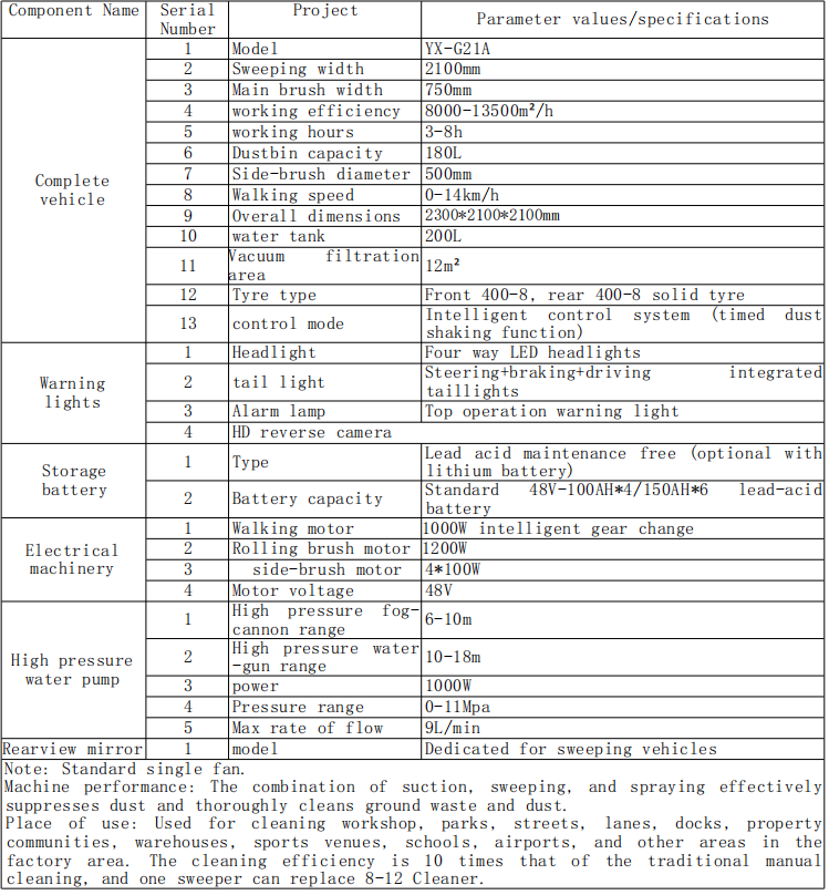 Luogo di utilizzo: utilizzato per pulire officine, parchi, strade, vicoli, banchine, comunità immobiliari, magazzini, impianti sportivi, scuole, aeroporti e altre aree nell'area della fabbrica. L'efficienza di pulizia è 10 volte superiore a quella della tradizionale pulizia manuale e una spazzatrice può sostituire 8-12 detergenti