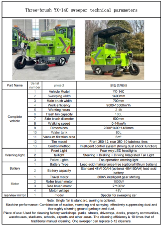 Prestazioni della macchina: combinazione di aspirazione, spazzamento e spruzzatura, che elimina efficacemente la polvere e pulisce a fondo i rifiuti e la polvere del terreno.