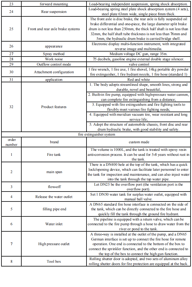 È perfettamente adattato alle esigenze antincendio di piccoli luoghi come comunità urbane, città e villaggi, parchi panoramici, ecc. Non solo può affrontare in modo efficiente gli incendi iniziali, ma può anche svolgere ispezioni quotidiane di prevenzione incendi e funzioni pubblicitarie. Si tratta di un'attrezzatura importante per costruire un sistema antincendio di base a "copertura totale e risposta rapida" e compensa efficacemente le carenze dei grandi camion dei pompieri nel campo antincendio dei terminali.