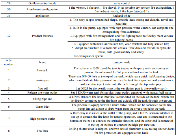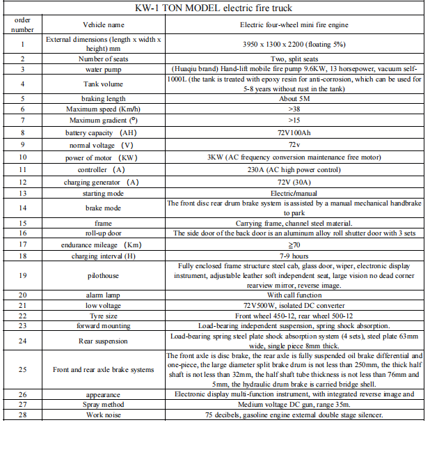 Camion dei pompieri elettrico MODELLO KW-1 TONÈ un importante complemento al tradizionale sistema di protezione antincendio, particolarmente adatto per la lotta antincendio iniziale, ambienti ristretti e la prevenzione quotidiana. È ecologico, economico e pratico ed è adatto per la promozione in comunità, punti panoramici, parchi industriali e altri scenari.