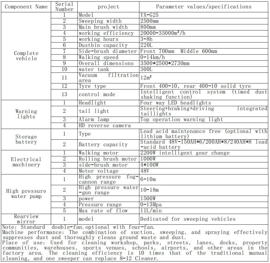 Prestazioni della macchina: la combinazione di aspirazione, spazzamento e spruzzatura elimina efficacemente la polvere e pulisce a fondo i rifiuti e la polvere del terreno.