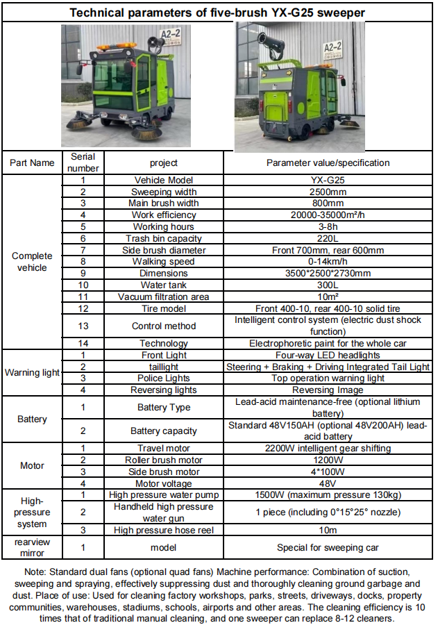 Prestazioni della macchina: combinazione di aspirazione, spazzamento e spruzzatura, soppressione efficace della polvere e pulizia accurata dei rifiuti e della polvere del terreno.